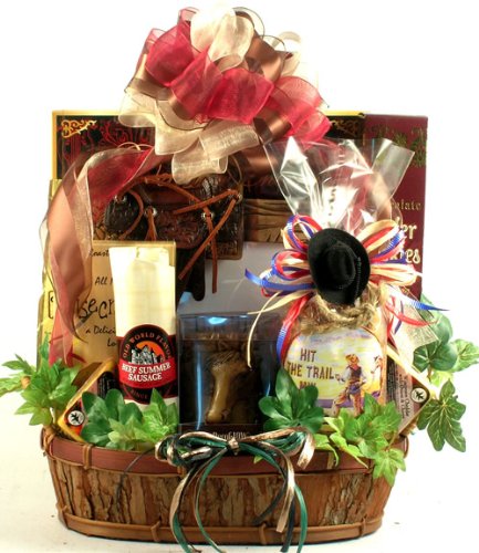 - The rustic charm, coupled with the great selection of choice gourmet gifts and high-end keepsakes makes this gift basket one you will want to giddy up and get to!