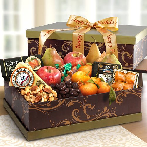 - Send Happy Birthday wishes in an elegant gift with fresh fruit including Comice and Bosc pears, Fuji apples and mandarins.