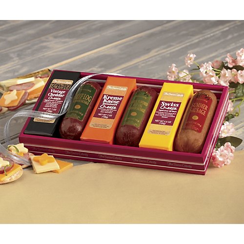 - Gift of 4—Vintage Cheddar and Kreme Kaese Cheeses, BEEF LOG and Summer Sausages. 1 1/2-lbs. net wt.